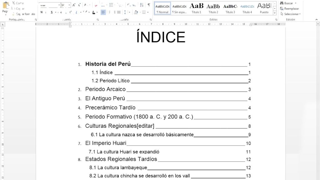 - Una vez seleccionado el estilo, Word generará automáticamente un índice general con los títulos y subtitulos de tu documento.